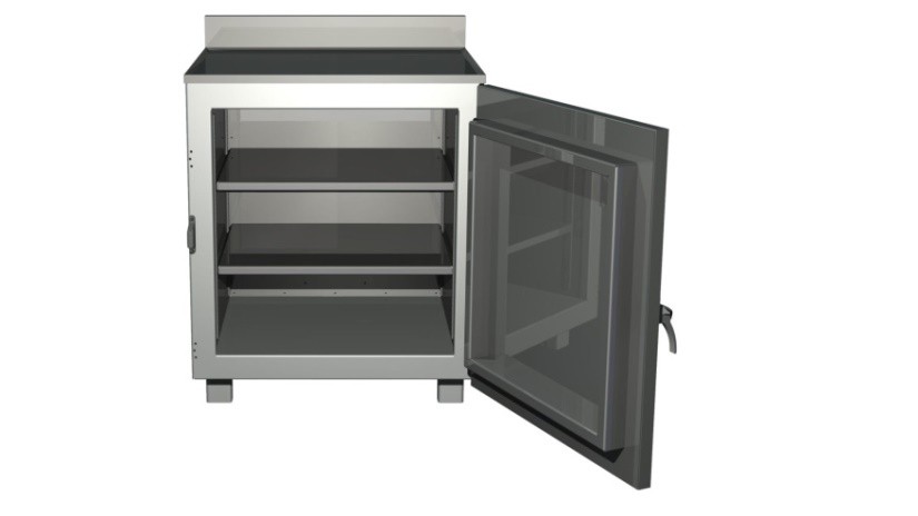 This shield designed for facilities that prepare and dispense high activity 131I therapy doses. The shield offers excellent protection from beta and gamma radiation and has a fully shielded floor. The lead glass is 3.5 inches thick to shield out the high-energy gamma photons from this radionuclide.